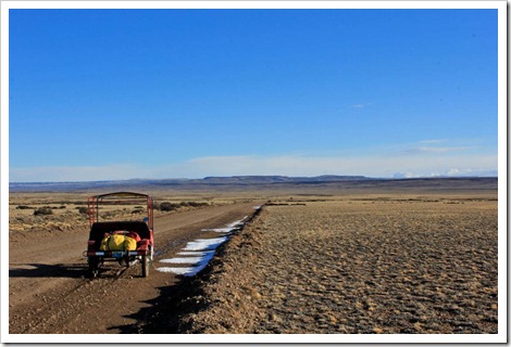 Time to ride! The morning road paid me back for my trials by putting the wind at my back and even though it was gravel and dirt, I soared along it. I knew from a sign a day ago that I was approximately 40km from Gobernador Gregores, a town large enough that I should be able to resupply – in fact, I was heading a bit out of my way already the evening before to get to this town and had hoped to make it before nightfall.
